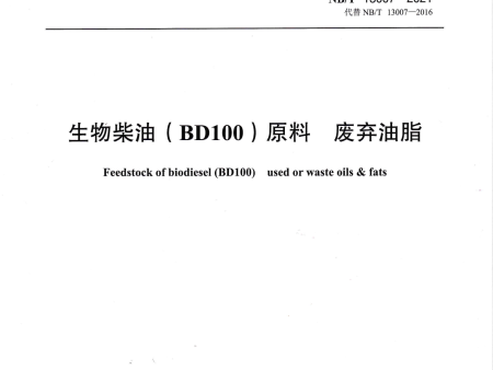标准制定-生物柴油(BD100)原料 废弃油脂