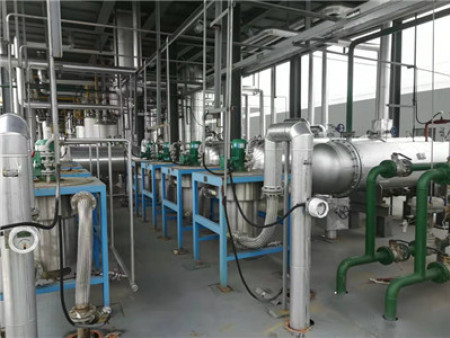 粗基础油与萃取溶剂(复合溶剂)在多级萃取离心机逆流萃取。萃取后的基础油经导热油炉来的导热油加热到 150℃以上送入产品脱溶塔,在真空状态下蒸馏,塔顶物料冷凝后送至溶剂暂存罐重复使用,塔底基础油冷却后送产品储罐;萃取后的溶剂送溶剂回收塔回收溶剂。